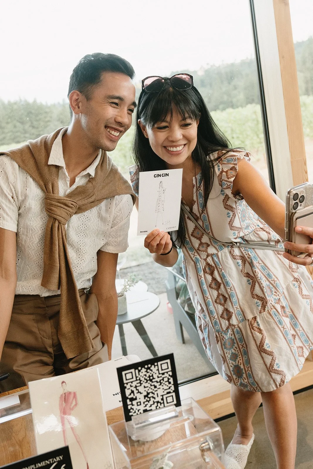 On Monday, August 4, 2025, I debuted my live wine watercolor guest portraits at the stunning L’Angolo Estate in Newberg, Oregon. In collaboration with Benable, this intimate brand activation brought together 50 of Portland’s top influencers for an evening of wine, bites, and one-of-a-kind keepsakes. Over the course of three hours, I created 50 portraits—each painted using L’Angolo’s Reserve Pinot Noir. In this blog, I’ll walk you through the event + what wine color portraits actually art: